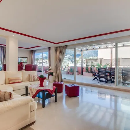 広々としたベッドル-ム2室のAmazing Rooftop マルベ-リャアパ-トから歩いて6分離れたPuerto Deportivo de Marbellaなどの観光スポットに近接しています. 海の景色を望むテラスを提供するこの190m^2のアパ-トは,ナランホス広場からわずか0.7kmです.